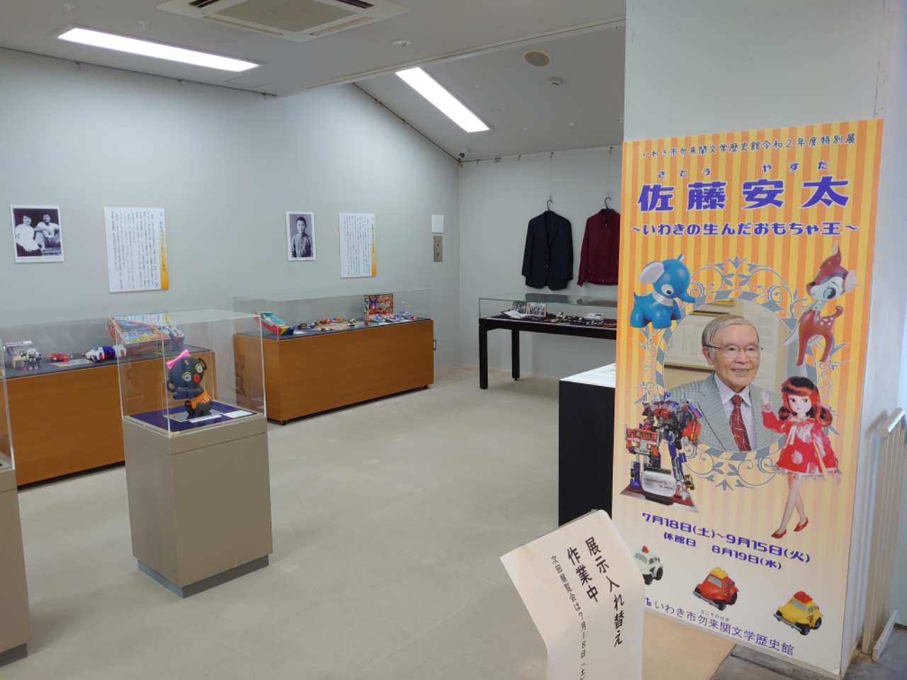 2020年7月18日㈯より9月15日㈫まで、いわき市勿来関文学歴史館にて、「佐藤安太展」~いわきの生んだおもちゃ王~ が開催しています。佐藤安太の足跡を巡る貴重な資料や、昔、遊んだおもちゃを眺めて楽しめる展示をしております。開催期間が残りわずかですが、厳しい時代にも明るく夢を持って生きた佐藤安太の姿を巡ることで、訪れた方々に元気が届くことを願います。